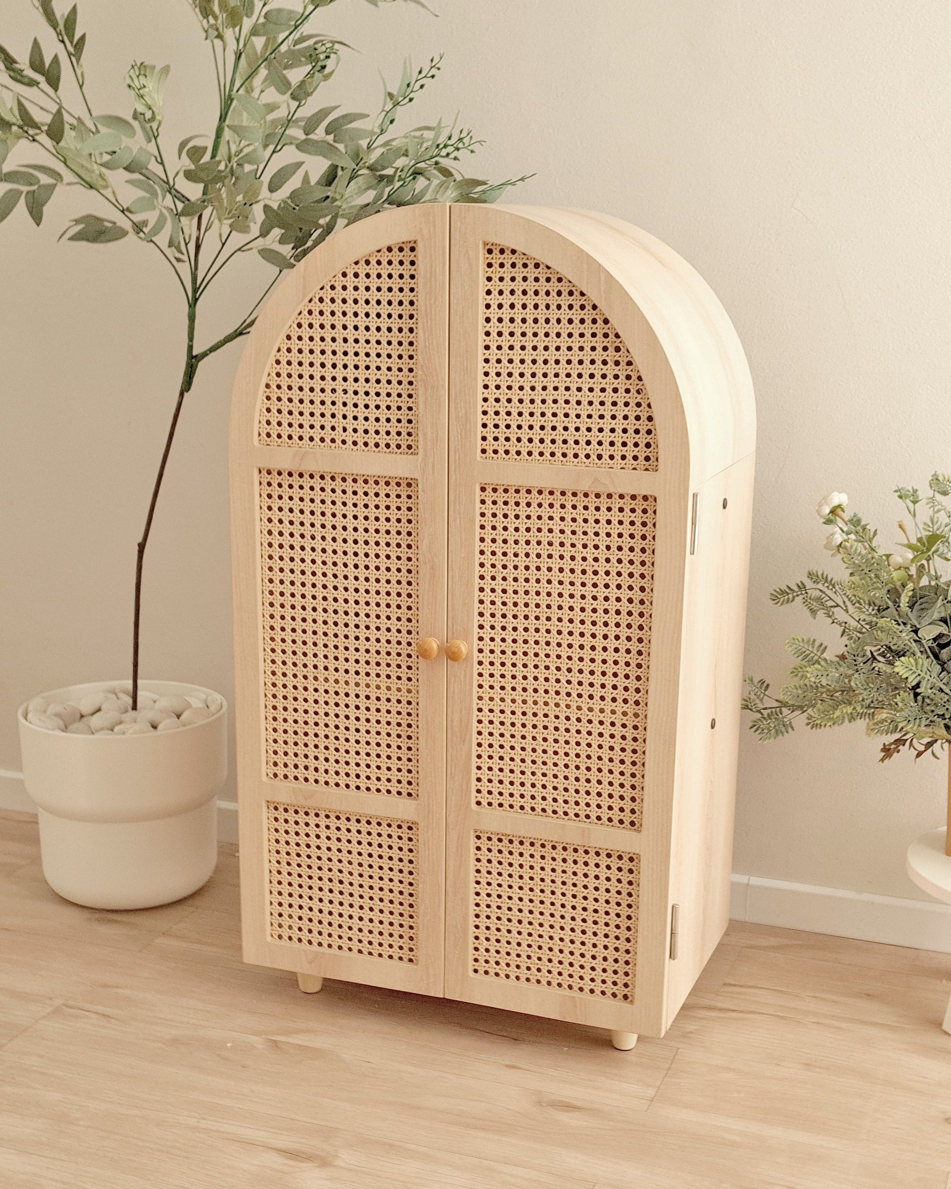 The doors are made of natural rattan, so the color and surface may slightly vary since it’s 100% natural material.